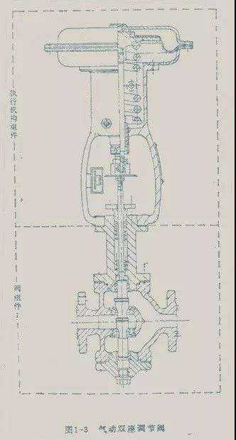 調節閥一般由執行機構和閥組件兩個部分組成。在有些場合可帶有閥門定位器、手輪機構等附件。調節閥中最典型的產品——氣動雙座調節閥的結構如圖1-3所示。