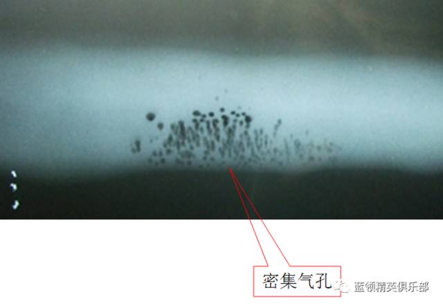 氣孔內(nèi)部充滿氣體,射線穿過氣孔幾乎不會(huì)形成材質(zhì)衰減。在射線底片上氣孔呈暗色斑點(diǎn),中心黑度較大。單個(gè)氣孔邊緣較淺平滑過渡,輪廓規(guī)則較清晰,密集氣孔成團(tuán)狀。氣孔大多是球形的,也可以有其它形狀,氣體的形狀與焊接條件密切有關(guān)。
